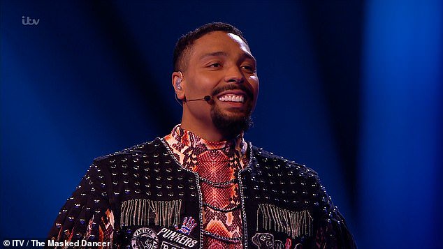 Jordan banjo takes off his disguise revealing himself as the viper during the first episode of itv's the masked dancer.